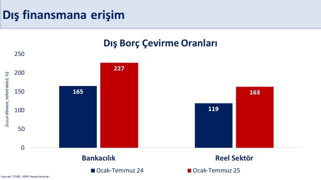 Şimşek, dış finansman görünümünün de olumlu seyrini sürdürdüğünü belirterek, yılın ilk 7 ayında reel sektörün dış borç çevirme oranının %163, bankaların oranının ise %227 seviyesinde gerçekleştiğini aktardı.