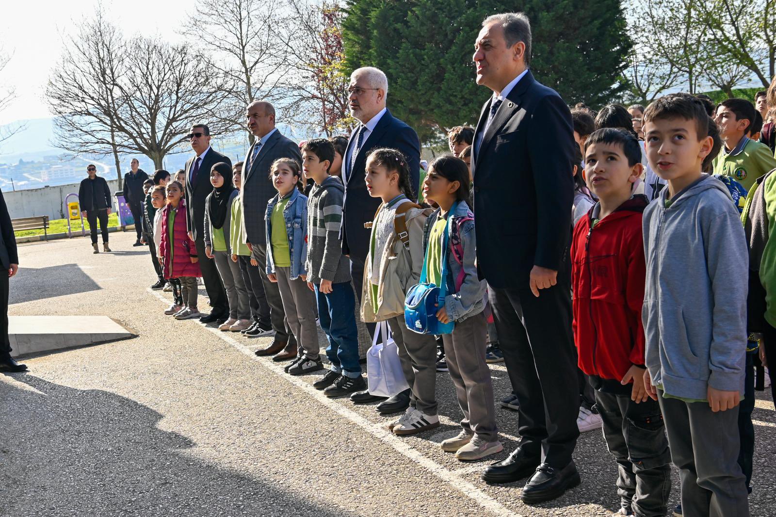Yalova Valisi Dr. Ahmet Hamdi Usta, okulda düzenlenen törene bizzat katılarak minik öğrencilerle bir araya geldi. İstiklal Marşı’nın okunmasıyla başlayan etkinlikte Vali Usta, öğrencilerle tek yürek olmanın gururunu yaşadı.